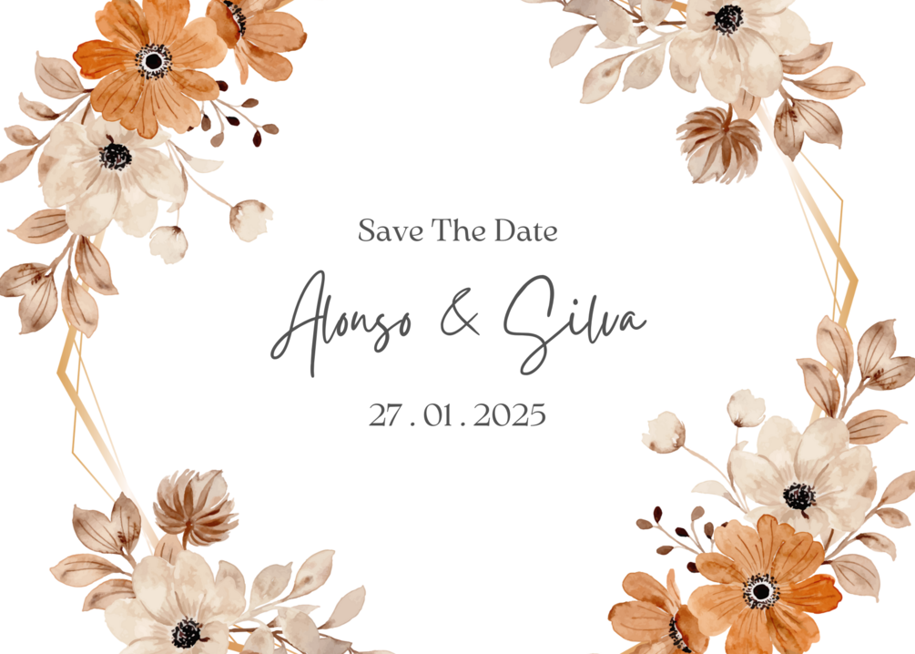 Get ready to fall in love with our Fall Flowers Wedding Invitation Template. The elegant and sophisticated design features gorgeous fall blooms in shades of burgundy, orange, and gold, creating a romantic and timeless look for your wedding.